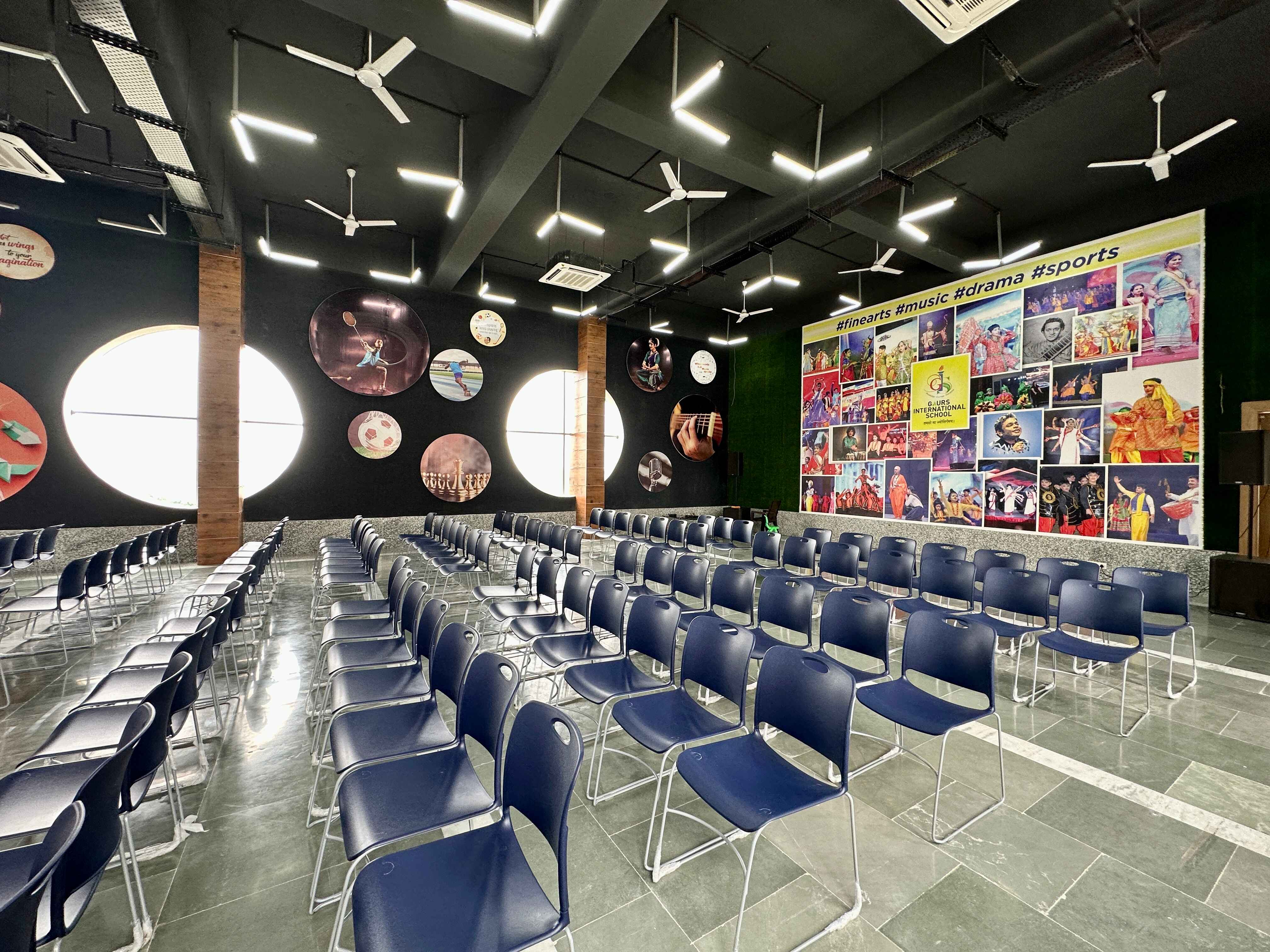 The Auditorium at Gaurs International School is a fully equipped performance and presentation space designed to host assemblies, cultural programs, annual functions, workshops, orientations, and competitions. Featuring a professional stage, advanced sound and lighting systems, projection facilities, and comfortable seating, it provides an excellent environment for showcasing student talent. The auditorium supports drama, music, debates, and award ceremonies, helping students build confidence and stage presence. Safety systems, ventilation, and trained technical staff ensure smooth event execution. As a central cultural hub, the auditorium reflects the school’s commitment to holistic development and vibrant community engagement.