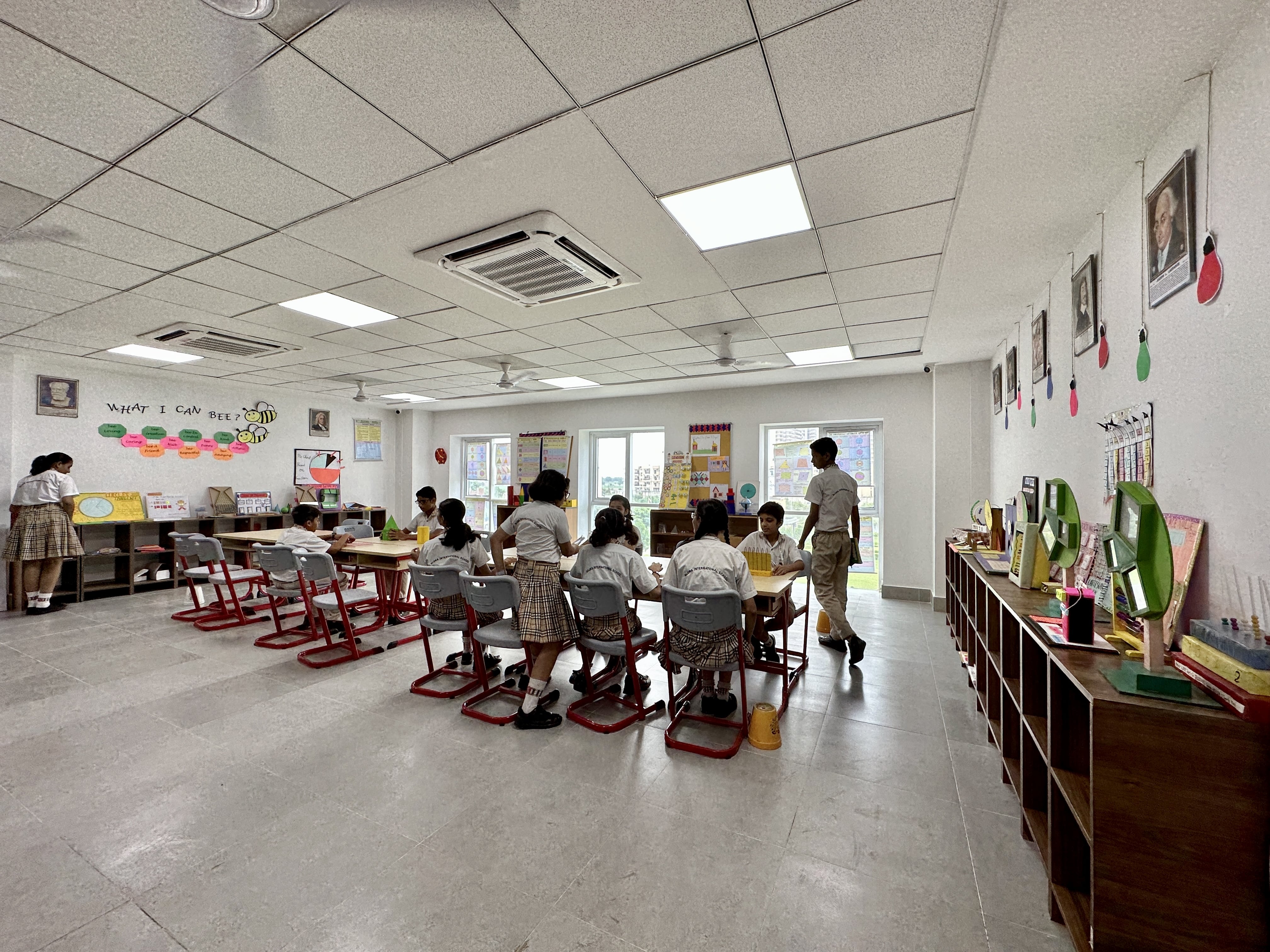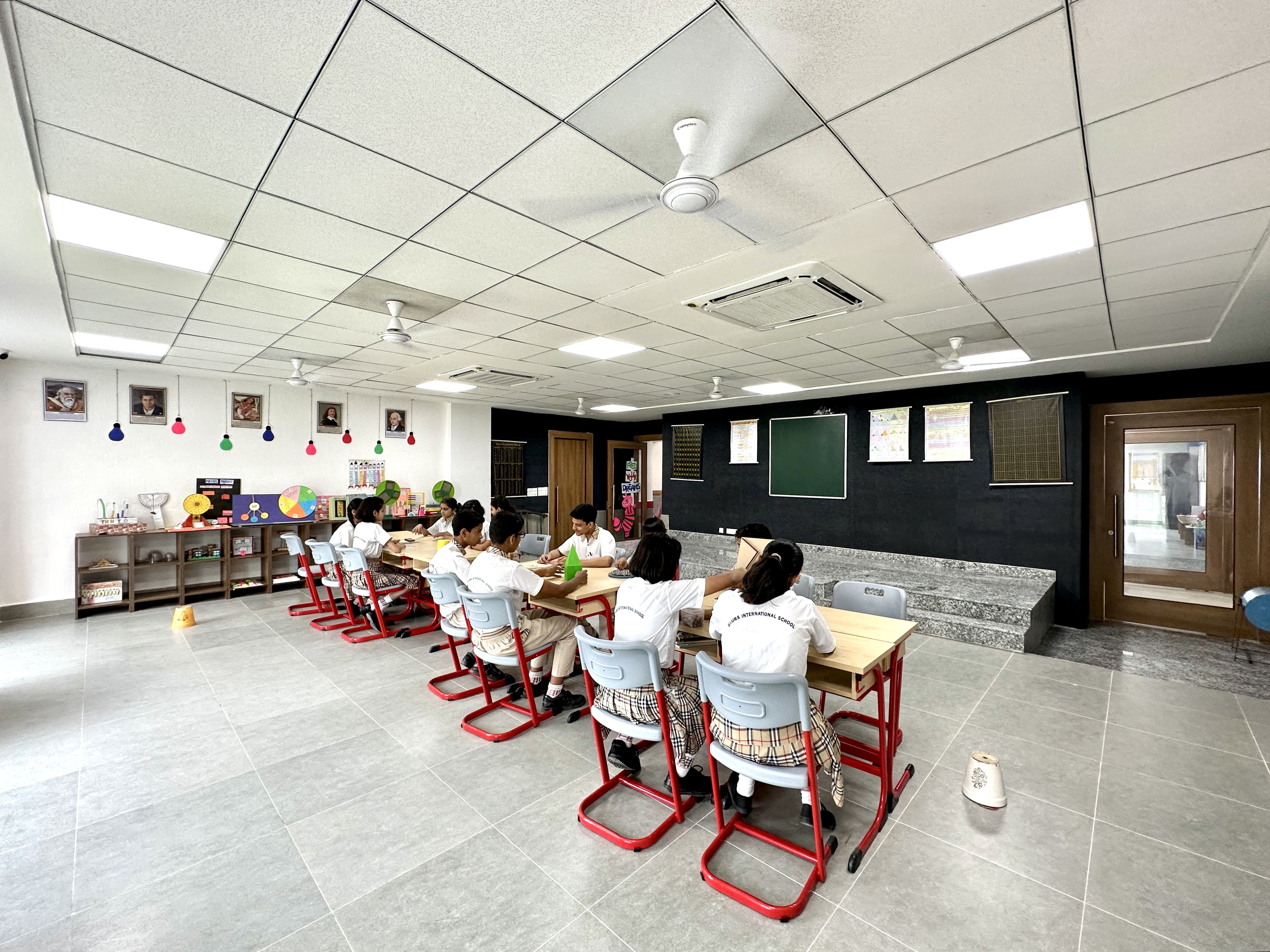 The Maths Lab at Gaurs International School is a hands-on learning space where students explore mathematical concepts through models, manipulatives, puzzles, and real-life activities. Equipped with geometric kits, measuring tools, number boards, and logic games, the lab helps children visualize and understand abstract ideas more effectively. Teachers guide students in conducting activities that strengthen reasoning, problem-solving, and analytical thinking. The colourful and engaging setup encourages curiosity and active participation. By transforming mathematics into an interactive experience, the Maths Lab boosts confidence, reduces fear of the subject, and builds a strong conceptual foundation essential for higher learning.